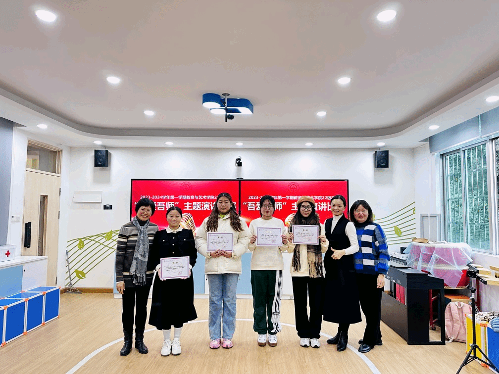 12月25日下午,教育与艺术学院在艺术楼蒙奥室举办了“吾爱吾师” 主题演讲比赛活动。22级学前教育和婴幼儿托育服务与管理专业20名参赛同学经过认真备稿、反复练习,为大家呈现了一场精彩的青春视听盛宴。同学们在演讲中讲述的一件件往事,无不动人心弦;讲述里出现的一位位老师,无不令人心生敬意。本次活动帮助同学们获得了榜样的熏染,涵养了师德,达到了见贤思齐、奋发向上的目标!