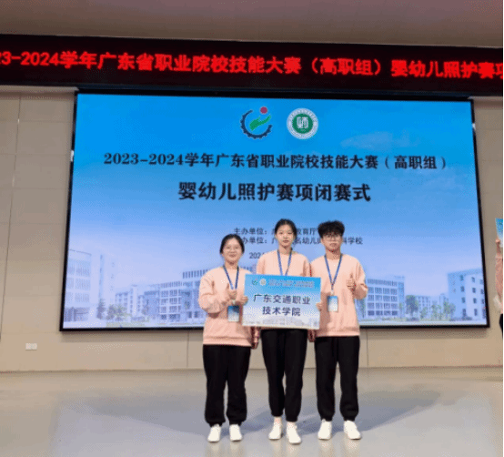 2024年1月18日至20日,由广东省教育厅主办的2023-2024学年广东省职业院校技能大赛暨2024年全国职业院校技能大赛(高职组) “婴幼儿照护”赛项广东省选拔赛在广东茂名幼儿师范专科学校成功举行,来自全省34支队伍同台竞技。由教育与艺术学院施鸿秀、陈美媛老师指导,2022级婴幼儿托育服务与管理专业学生林诗诗、韩思彤、梁楚杰组成的参赛队伍荣获三等奖。