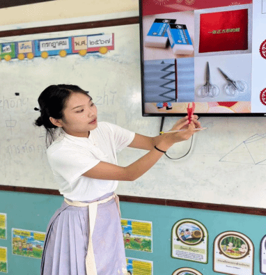 本次赴泰实习(支教)团队在泰国中小学开设中国剪纸课程,不仅有助于培养当地学生的动手能力和创新思维,更加深了他们对中国传统艺术的理解和喜爱,将中华优秀传统文化的种子播撒在海外青少年心中,进一步搭建起中泰两国人民友谊的桥梁。(文/图 沈钰婷)