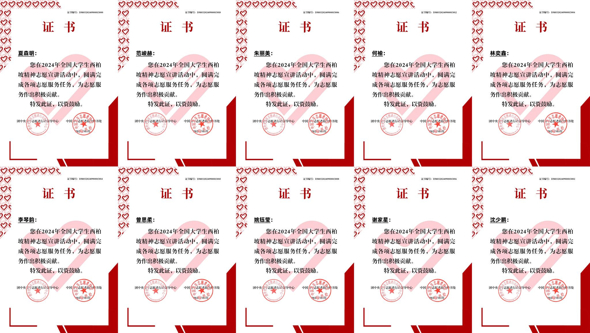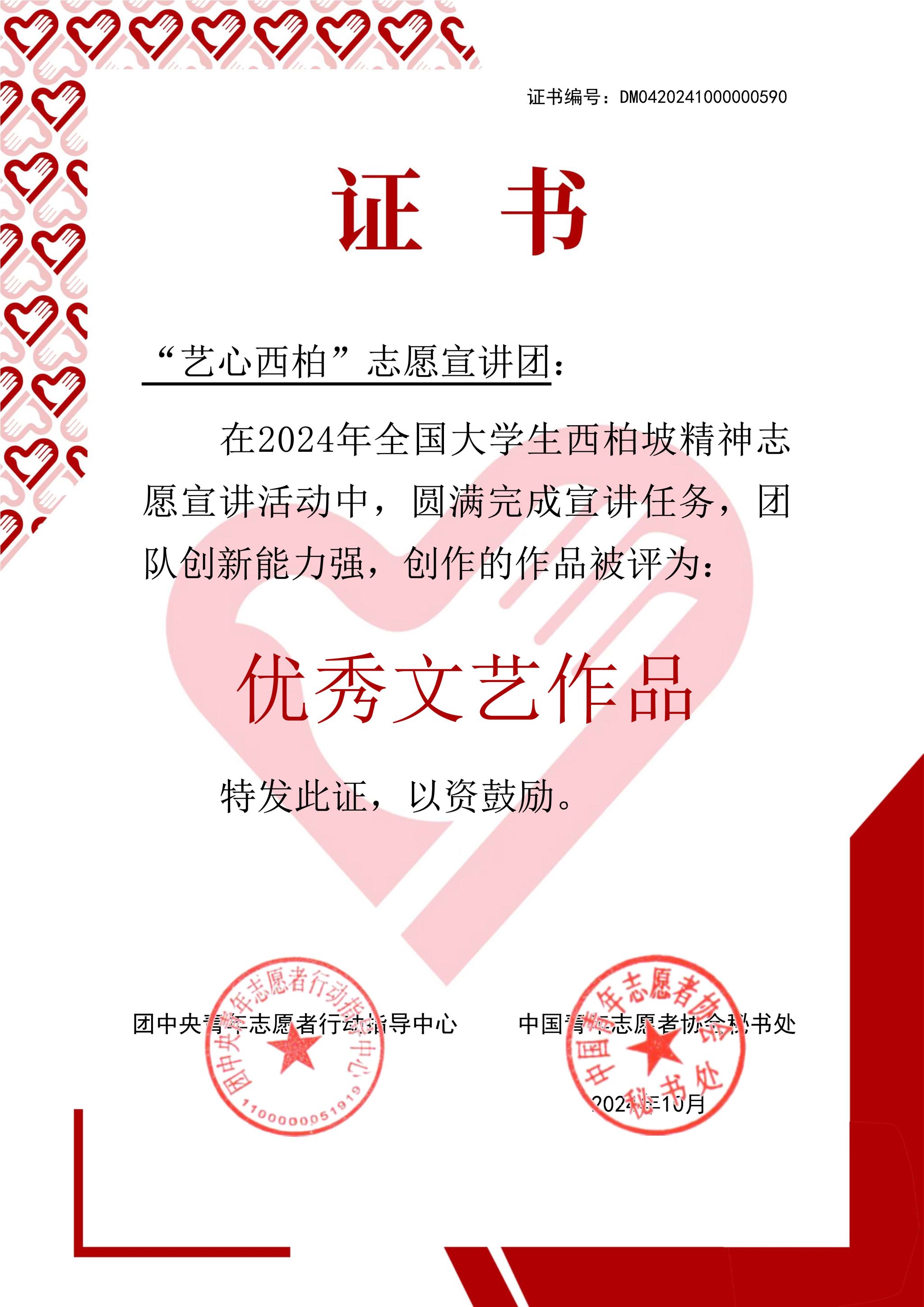 自团队成立以来,“艺心西柏”志愿宣讲团走进党群服务中心、新时代文明实践站、企事业单位、社区、及其他各类公共场所,广泛开展西柏坡精神宣讲活动。经主办方评定,“艺心西柏”志愿宣讲团获评2024年全国大学生西柏坡精神志愿宣讲活动“优秀团队”称号,团队创作作品获评“优秀文艺作品”!