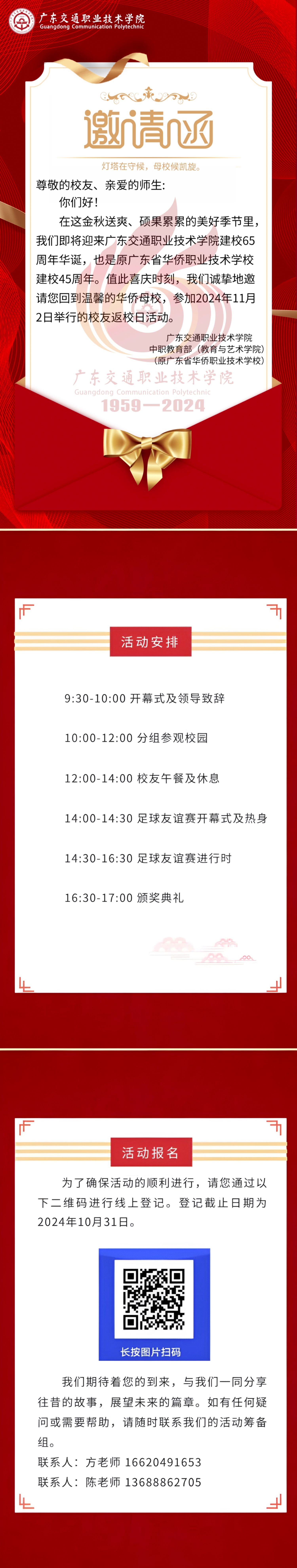 金道已铺就,学子齐归来——广东交通职业技术学院教育与艺术学院校友活动邀请函