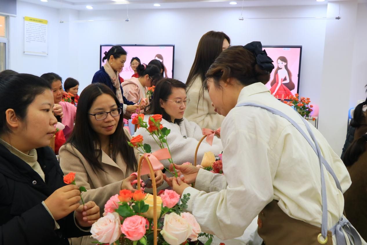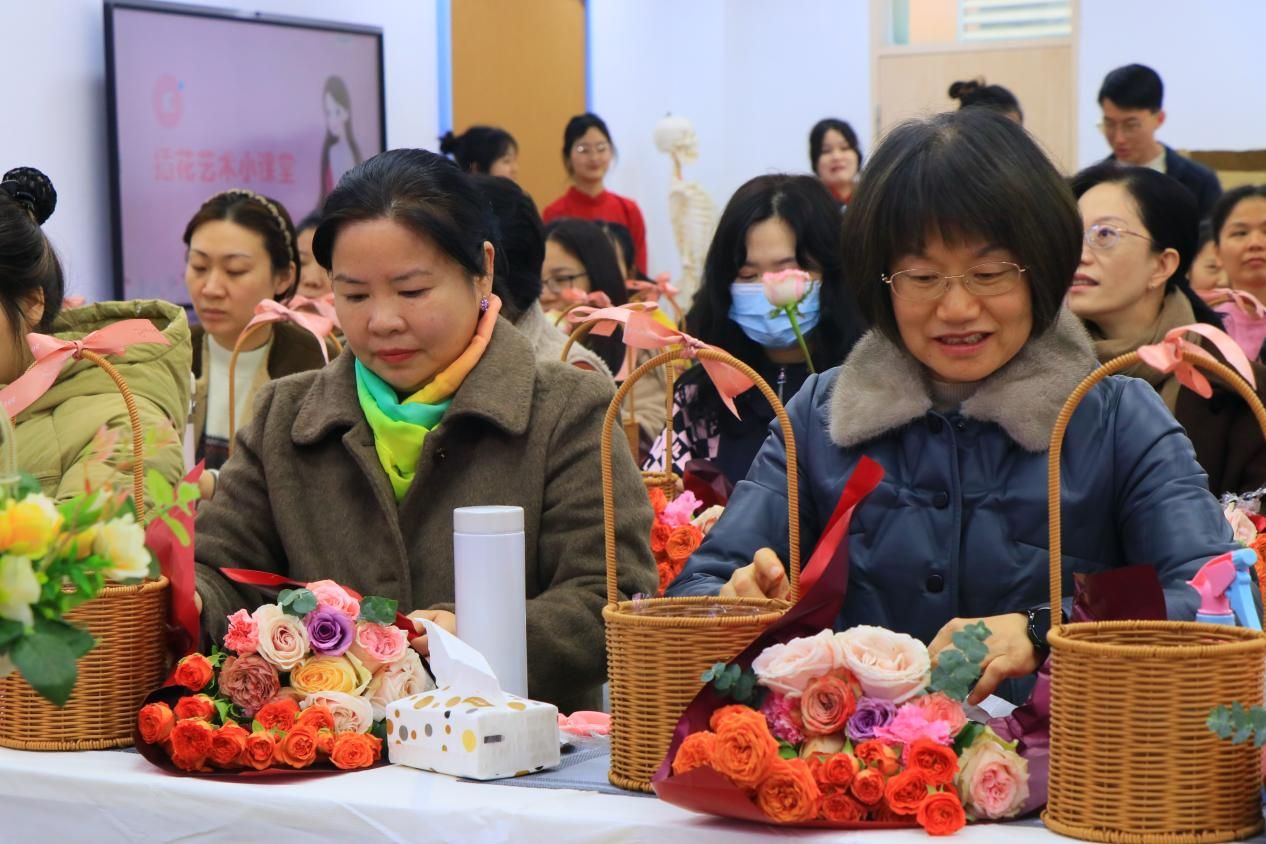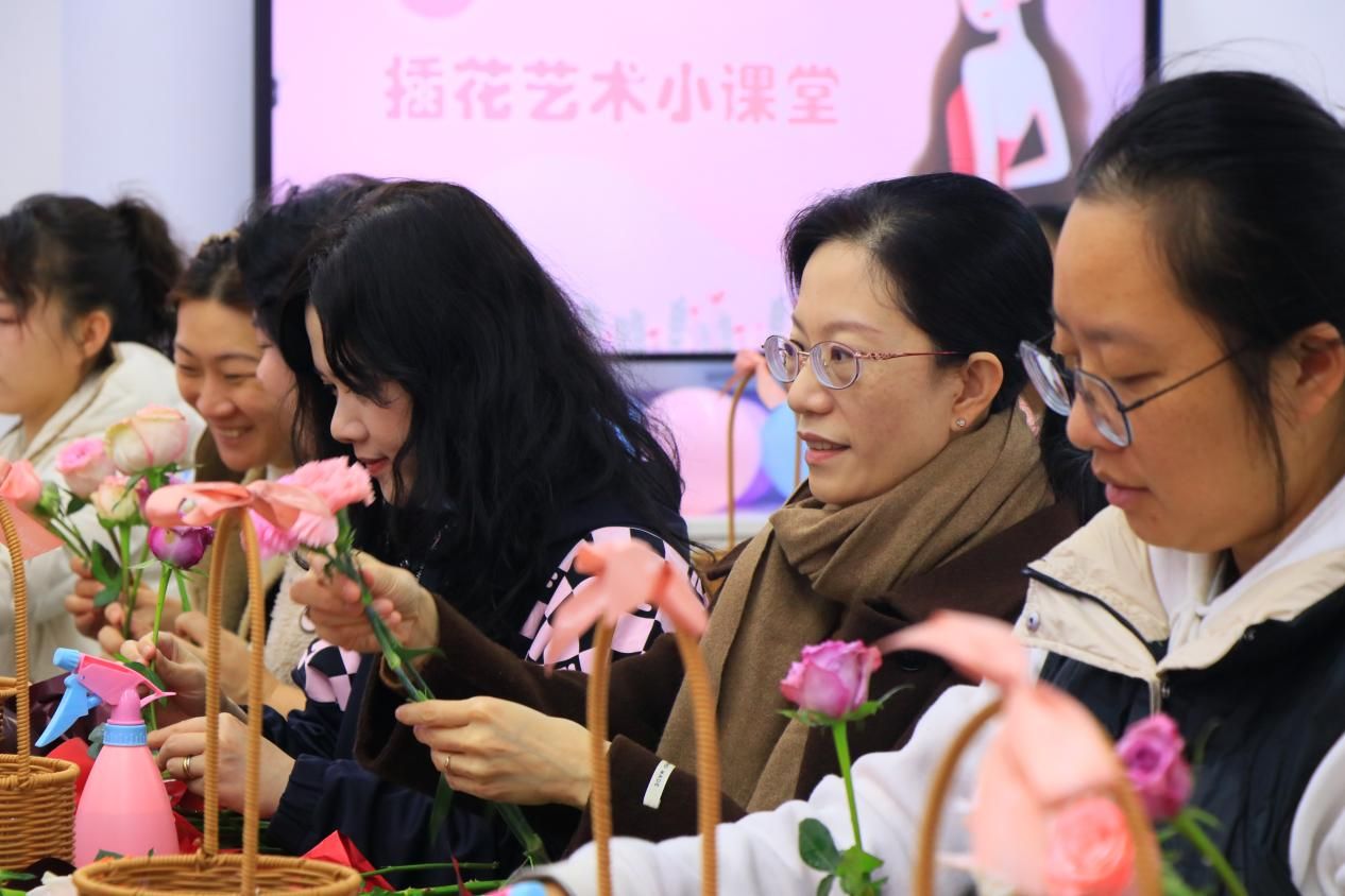 此次活动内容丰富多样,亮点纷呈。插花艺术小课堂环节,专业花艺师亲临现场,为女教职工们悉心讲解插花的起源、文化意义、基础知识以及实用技巧。从花材的选择搭配到造型设计,老师们都听得认真专注。在DIY实践环节,大家纷纷动手创作,将原本普通的花材巧妙组合,变成了一个个独具匠心的春日花篮。