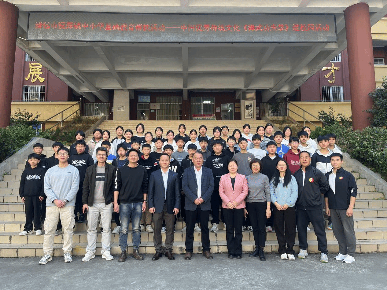 为深入贯彻《广东省推动基础教育高质量发展行动方案》,落实“百县千镇万村高质量发展工程”教育行动要求,2025年3月20日,广东交通职业技术学院教育与艺术学院副书记陈维泽、副院长林旭兰、禅武功夫拳教师张彪等6人赴清远市清新区浸潭镇中心小学和第一初级中学开展“中华优秀传统文化《禅武功夫拳》进校园”活动。这是我院作为广东省中华文化传承基地,连续多年深入清新区开展基础教育帮扶工作的又一重要举措。此次活动得到了帮扶学校全体师生的热烈欢迎和积极响应,学校方面表示非常感谢广东交通职业技术学院教育与艺术学院长期以来对提升本地基础教育水平的支持与帮助,并期待通过这样的文化交流活动,能够进一步丰富学生的课余生活,增强青少年对中华优秀传统文化的认识和热爱。