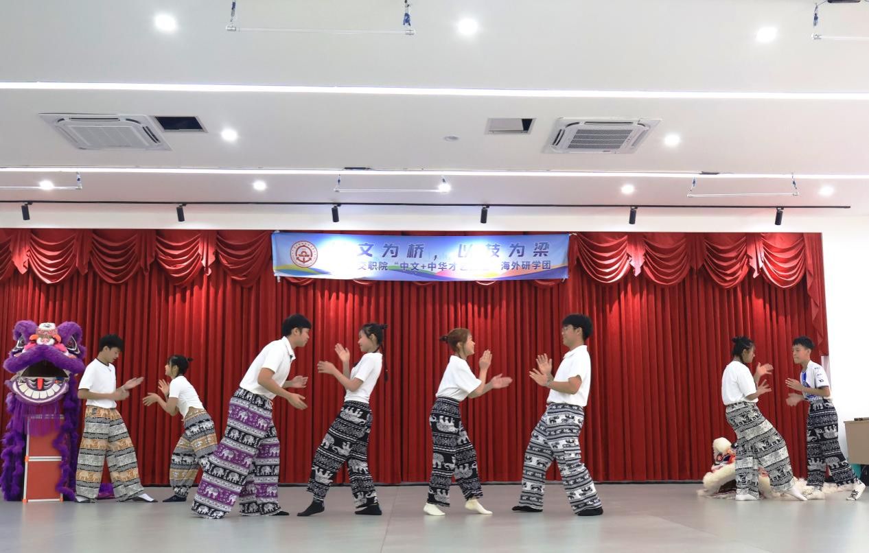 仪式现场播放研学活动视频,带领大家回顾了本次研学营始末。学员们则用精彩的表演展示了参营期间所学和泰国民族风情,赢得热烈掌声。
