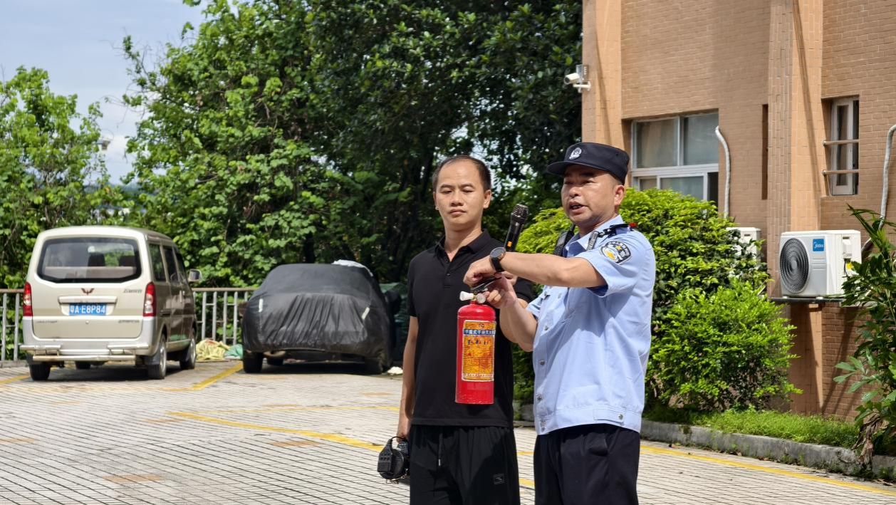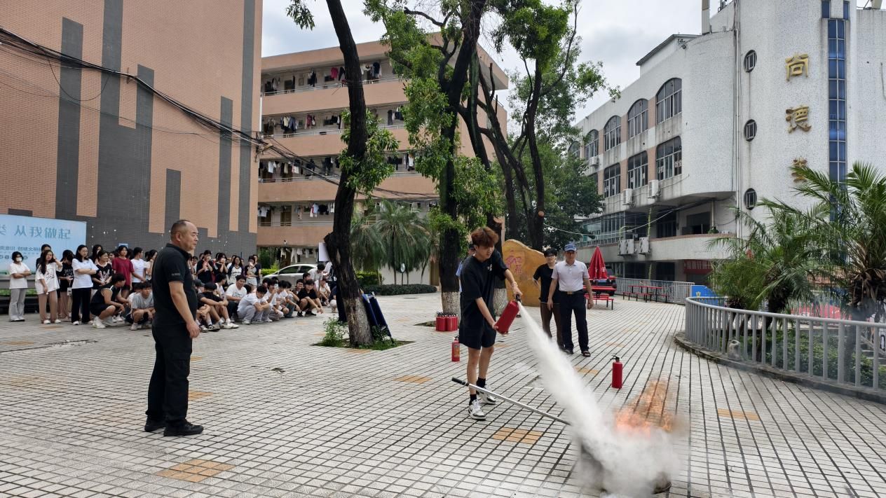 在消防安全技能培训环节,龙洞派出所民警陈华文系统讲解了干粉灭火器“一提、二拔、三压、四喷”的操作步骤及上风向灭火要领,并进行了专业示范。随后,在民警和安保人员的指导下,师生踊跃参与灭火实操体验,切实掌握了初期火灾的扑救技能。