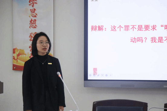 在随后的普法环节,上海靖霖(广州)律师事务所的实习律师彭雨薇为师生们带来了一场题为《大学生刑事风险防范和救济》的宣讲。她以生动的案例和深入浅出的讲解,详细介绍了大学生最容易触犯的罪名——帮信罪的构成要件、法律后果及防范措施。这场宣讲不仅增强了师生们的法治意识,更为他们提供了实用的法律指导。