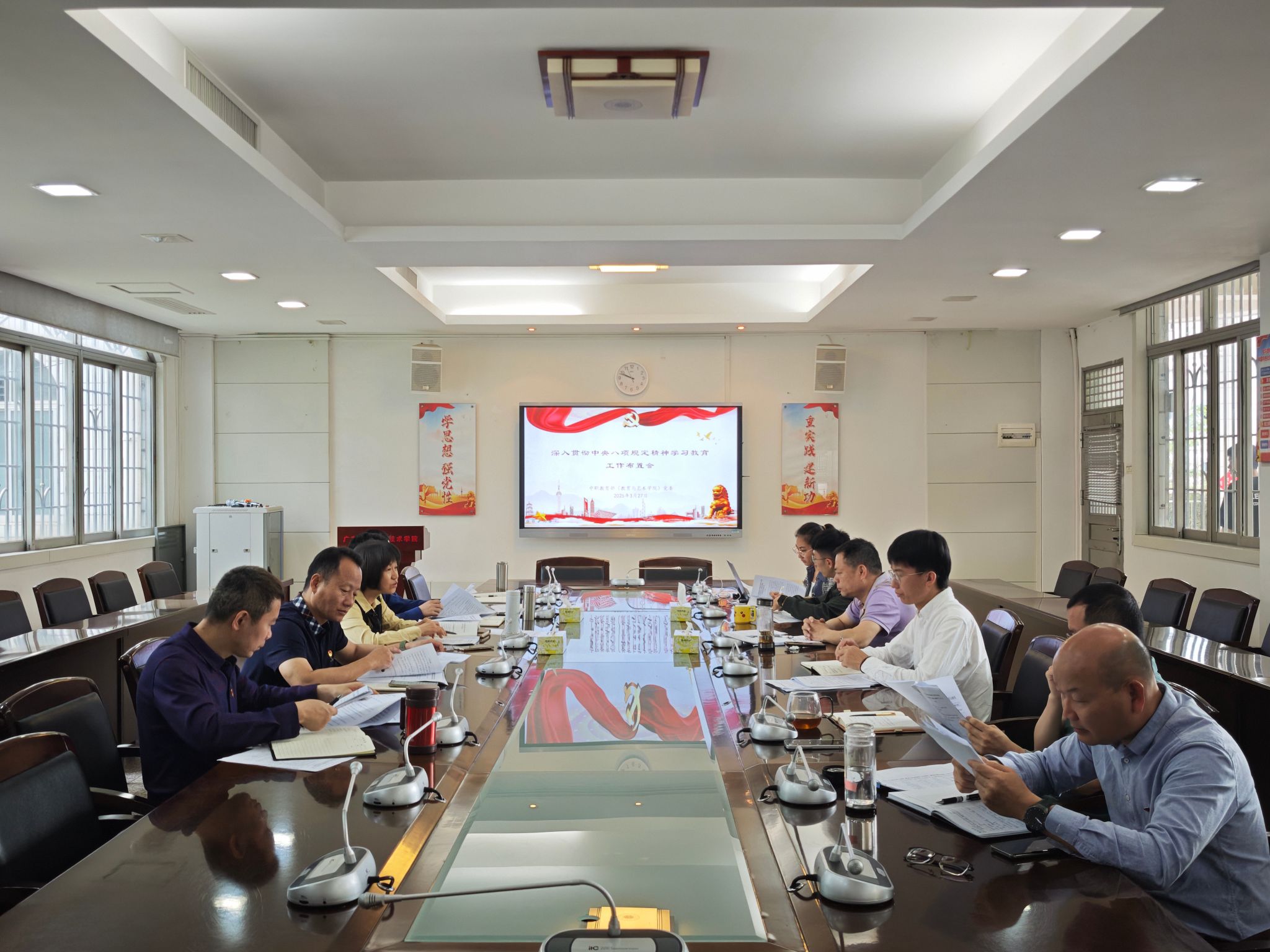 会议认真学习了《中共中央办公厅关于在全党开展深入贯彻中央八项规定精神学习教育的通知》精神,传达了学院党委相关工作要求,并对我部门党委相关工作进行布置。