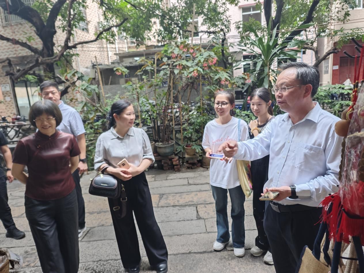 活动当日,在高志国的陪同下,邱文祥一行深入探访了被誉为“广州南肺”的小洲村。师生们漫步于青石板路,穿梭于古宅旧巷,不仅参观了村内保存完好的明清古建筑群,更在实地走访中,深刻感受到了小洲村作为岭南水乡典型代表的独特魅力。他们详细观察村落风貌,深入挖掘文化特色,对小洲村深厚的历史文化底蕴有了更为直观和深入的了解。在探访过程中,师生们还与百年理发店的第四代主理人陈师傅进行了深入交流,从店铺创立时的手艺传承讲到行业兴衰与时代印记,言语间满是对传统的坚守与情怀。师生们专注聆听,在陈年旧事中触摸古村落的文化肌理,更加坚定了传承和弘扬传统文化的决心。此次探访,不仅为双方后续的合作奠定了坚实的基础,更为大学生“三下乡”社会实践活动提供了宝贵的实践场景,让学子们在实践中感受文化的厚重,增强文化自信。