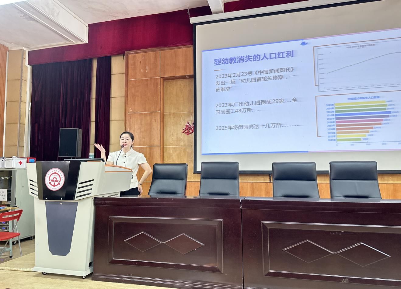 学前专业部负责人陈明珠老师详细介绍了专业的实训条件、课程学习、专业特色及就业前景,通过生动的案例和丰富的数据,让新生们对学前教育专业有了直观而深入的认识,坚定教育信念。此次活动不仅加深了新生们对专业的理解,也激发了他们对未来职业生涯的兴趣和热情。