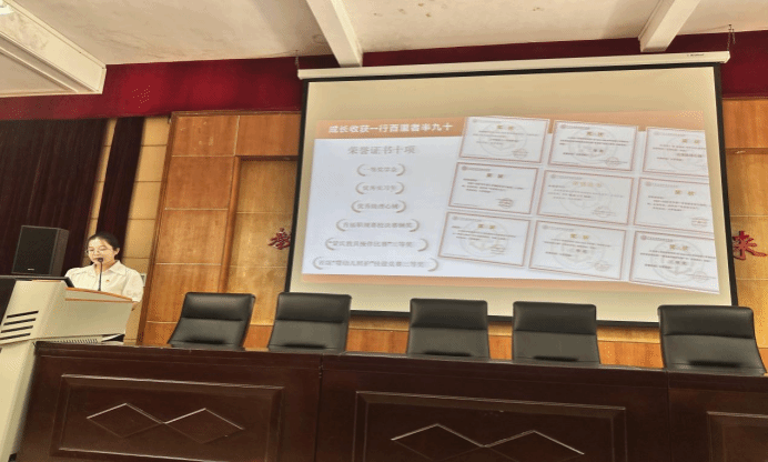 优秀学生代表22级学前教育2班黄嘉慧和23级学前教育2班姚钰莹为新生们分享了学习心得和成长经历,用实际行动诠释了每一份收获都来自对幼教初心的守护、来自自强不息的奋斗和不断挑战自己的决心。