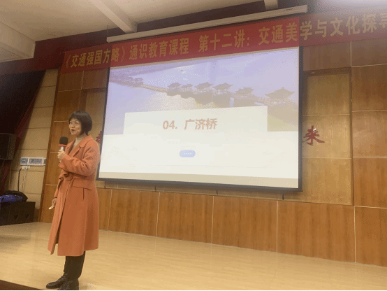 在打造既彰显交通强国特色,又紧贴时代需求的通识教育课程体系的征程中,教育与艺术学院再次迈出了坚实的一步。12月24日,由教育与艺术学院承办的“《交通强国方略》通识教育课程第十二讲:交通美学与文化探寻”在国际校区学术报告厅开讲,通过线上线下同步授课的方式,吸引了众多师生的关注。此次讲座旨在提升学生“家国情怀、使命担当、工匠精神、全球视野”的人文素养,为交通强国战略培养更多具备深厚文化底蕴和创新精神的人才。