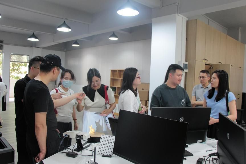 活动现场,实训室负责人详细介绍了实训室的建设背景、目标定位、功能布局及主要设备配置。该实训室融合了设计、制造、检测三大功能,配备了先进的数字化设计软件、高精度加工设备及智能化管理系统,能够满足从产品设计到样品制作的全流程产品设计教学需求。