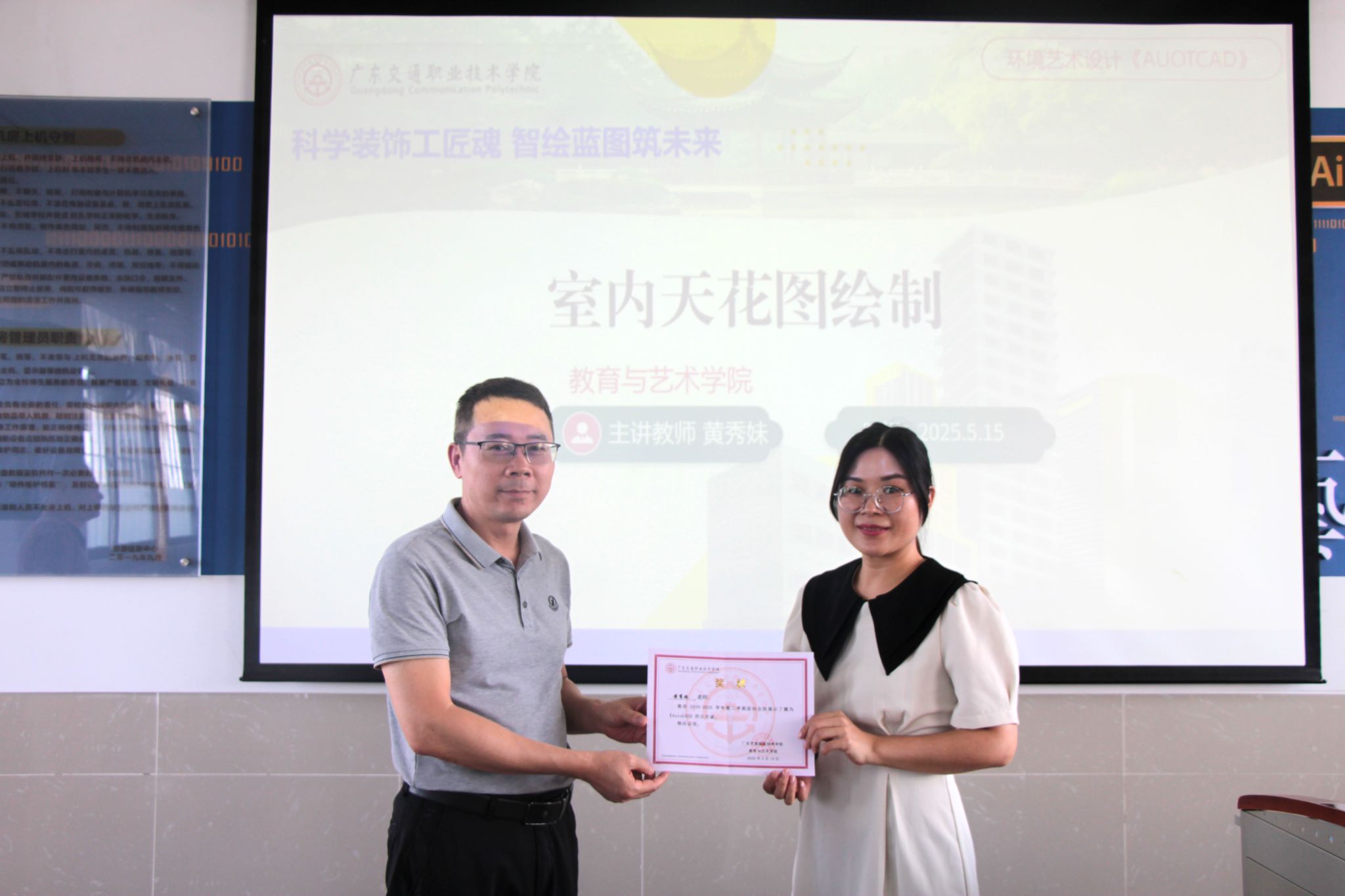 在第二阶段的教学研讨会上,专业群负责人叶敏对黄秀妹老师的公开课给予了高度评价,认为黄老师运用VR全景空间和天花设计仿真动画,极大地帮助学生深入理解家装天花构造。与会的领导和教师们也纷纷发表意见,一致认为黄老师将国家三级室内设计师考证评分标准融入知识点讲解的方法值得借鉴。此外,与会者还就“天花结构与制图规范标准”等议题展开了深入的讨论。在研讨会的最后,姚业华副院长向黄秀妹老师颁发了证书。
