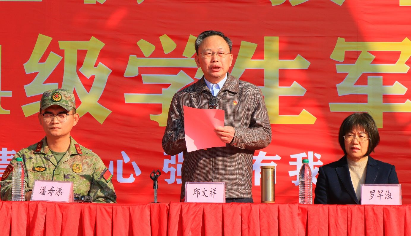 邱文祥首先代表学院领导班子,向不辞辛劳、远道而来的教官团队表示最热烈的欢迎和最诚挚的感谢!同时,也向即将接受军训洗礼的全体同学们致以最美好的祝愿和最殷切的期望!关于本次军训,他向同学们提出了以下三点期望,愿与大家共勉:一是要怀揣爱国情怀,坚定理想信念。二是要磨炼顽强意志,塑造精神品质。三是要练就过硬本领,共筑强军梦想。希望同学们以有为之身、展鸿鹄之志,不负韶华,勇往直前!