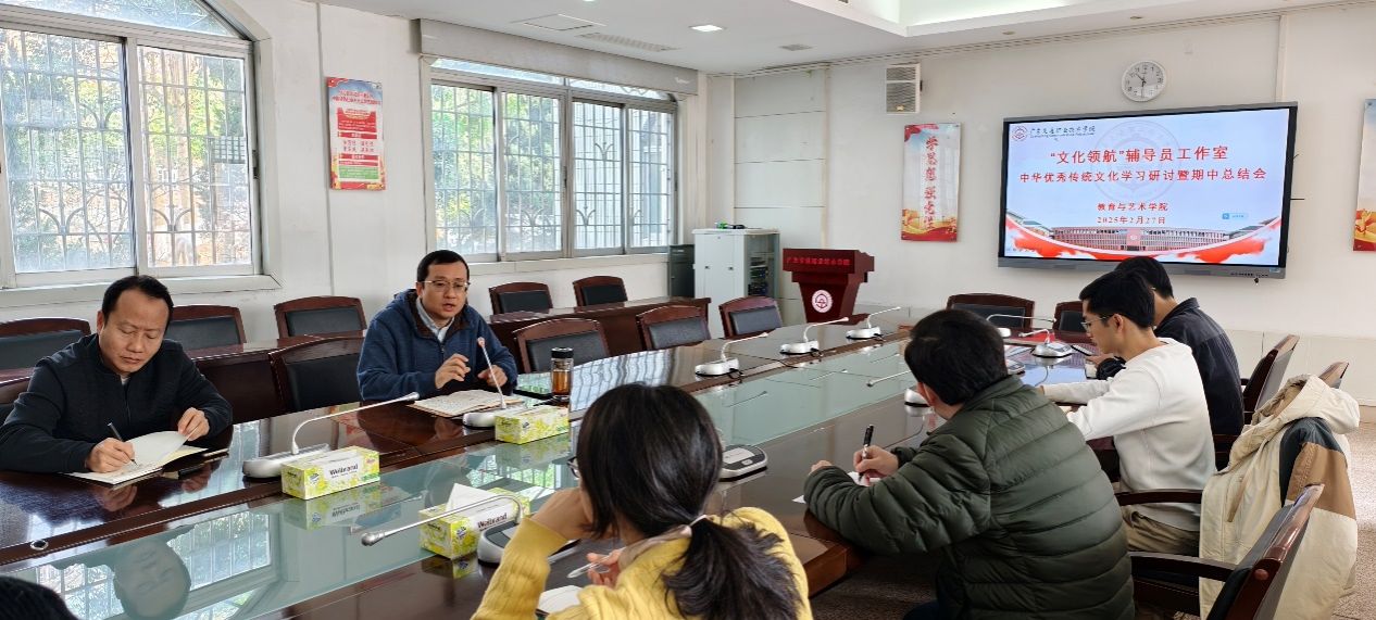 2025年2月27日,教育与艺术学院“文化领航”辅导员工作室在林百欣会议室召开中期工作会议,总结工作室成立一年来的工作进展,并规划下一步的工作方向。教育与艺术学院党委副书记陈维泽、学生科科长李志立、团委书记张朝鑫以及“文化领航”辅导员工作室团队成员参加了此次会议。