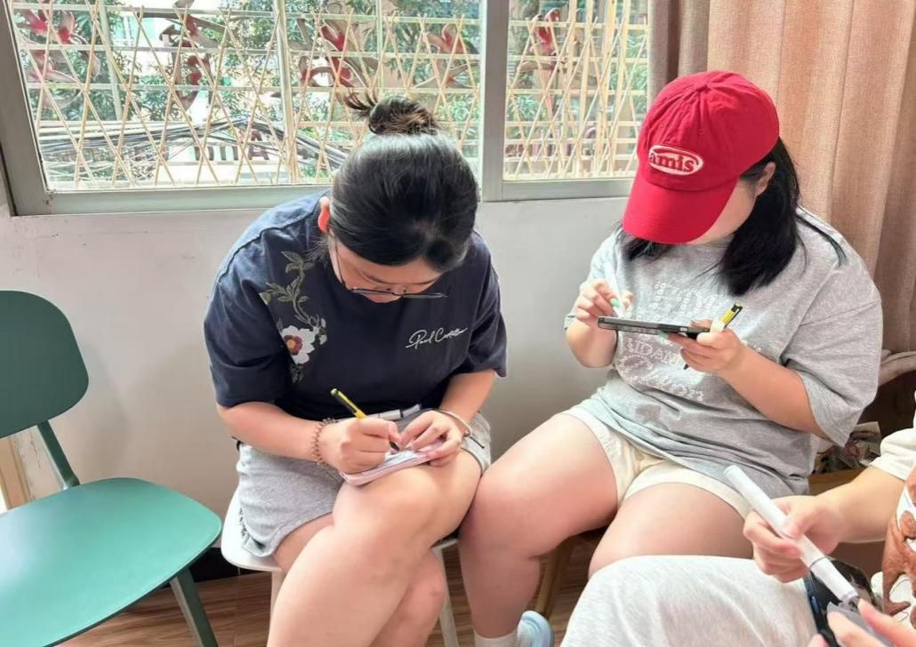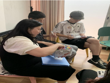 杨文清老师首先向同学们分发了压力知觉量表,以了解大家当前阶段的压力状况。随后,老师指导学生们使用彩笔为象征自己压力的天气图案上色,并鼓励大家相互分享近期的压力经历,引导学生在活动中逐渐打开心扉。