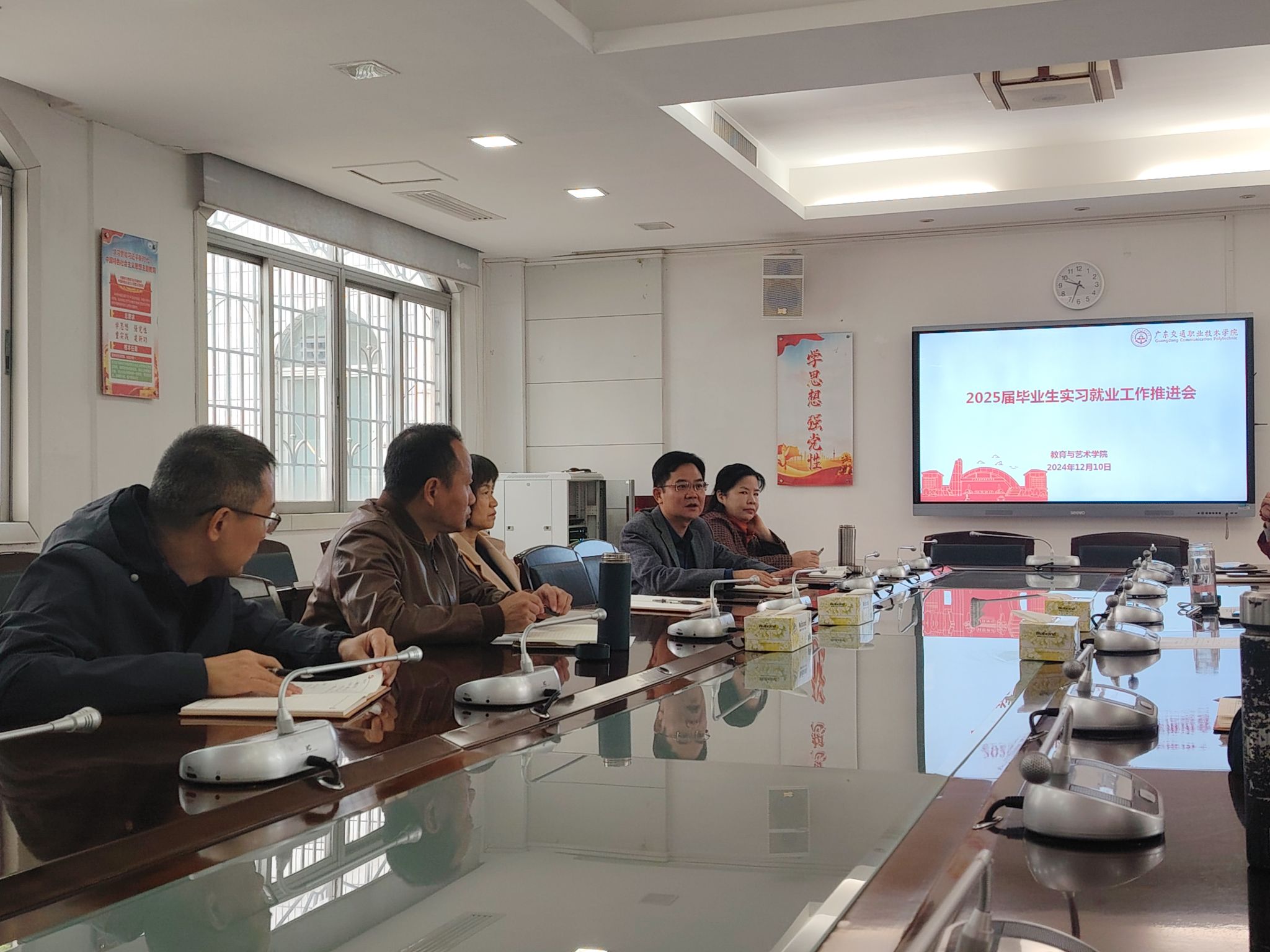 招聘会前夕,学院召开了2025届毕业生实习就业工作推进会暨招聘会筹备工作会议,部署教育与艺术学院全体教职工共同参与到这项重要工作中来。