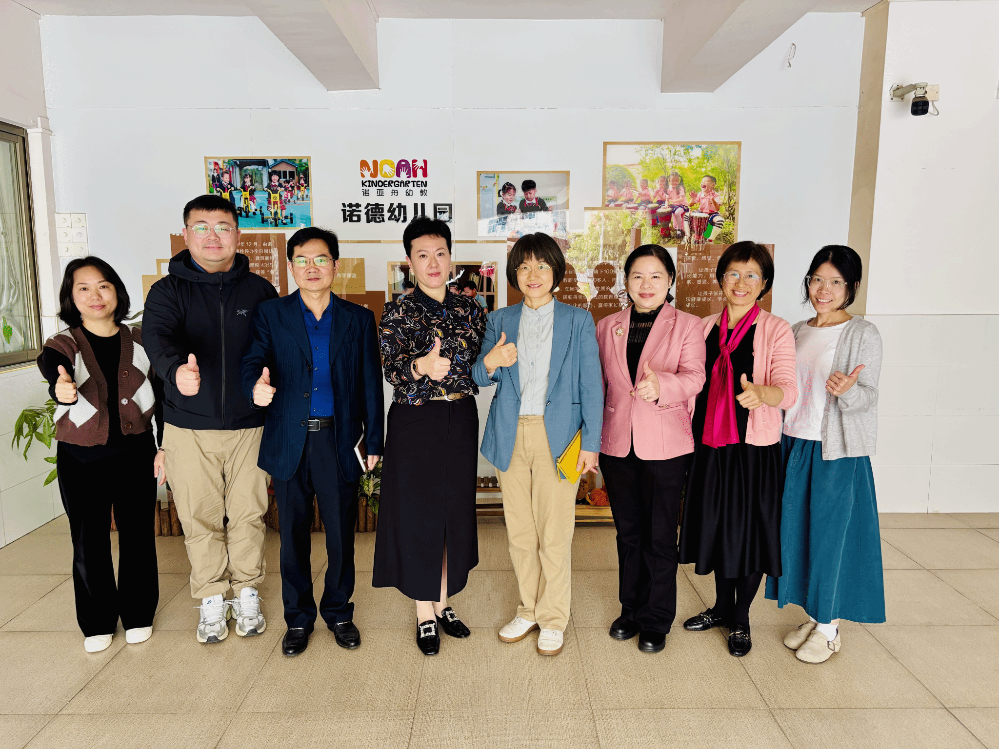 方晓秋园长带领罗罕淑院长一行参观了广州市番禺区南村镇诺德幼儿园,详细介绍园所的环境、课室和户外活动场地。在参观的过程中,罗罕淑对园所务实的管理风格和创新的办学理念给予了高度的认可。
