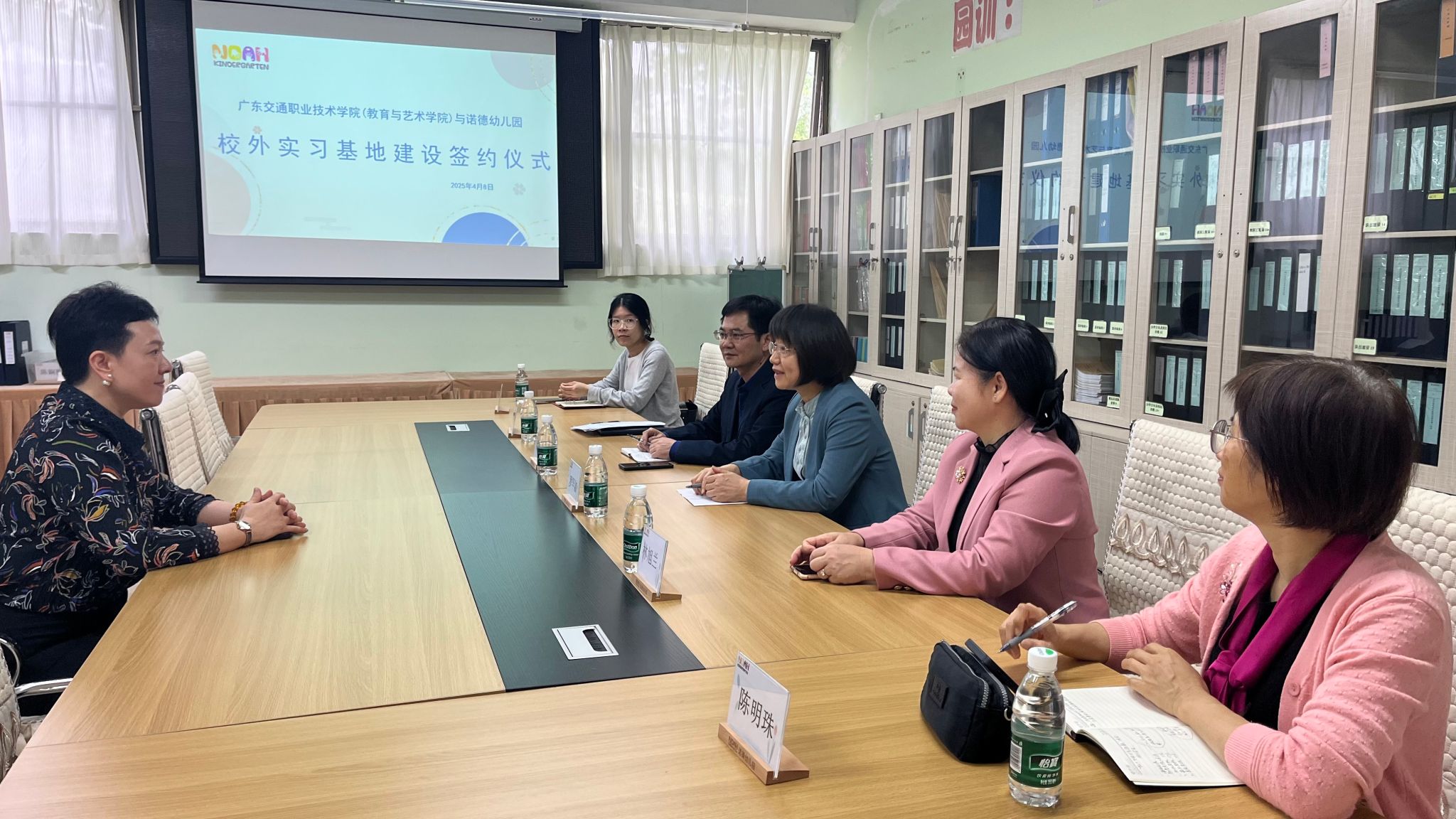 为进一步推动校外实习基地建设,促进实践教学能力,提高人才培养质量,近日,教育与艺术学院院长罗罕淑、副院长林旭兰、梁准平一行6人赴广州市番禺区南村镇诺德幼儿园开展校外实习基地调研,与企业深入交流人才培养、实习实训、产学研合作等事宜,受到幼儿园方晓秋园长热情接待,双方签订了共建校外实习基地协议。
