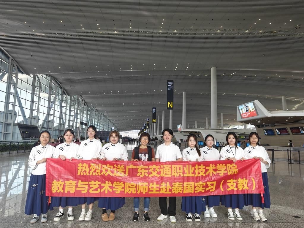 在“一带一路”倡议不断推进、国际职业教育合作日益繁荣的时代背景下,教育与艺术学院第14批赴泰国实习(支教)团队于5月22日正式启程。9名师生肩负着传播中华文化、促进国际教育交流的重任,踏上泰国的土地,开始为期两个月的实习(支教)之旅。此次行动不仅是学院国际化办学的生动体现,更是职业教育服务“一带一路”建设、推动中泰人文交流的又一重要里程碑。