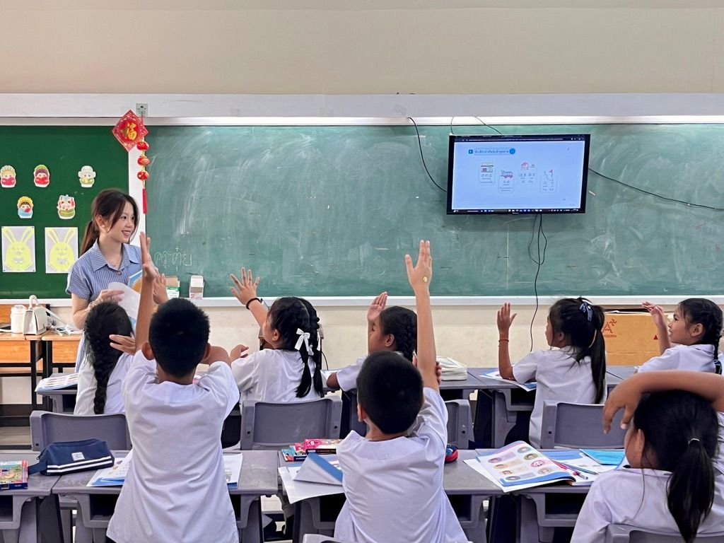 在泰国三所合作学校,实习生们开展了形式多样的汉语教学与文化实践活动。本次赴泰实习支教团队由学院精心选拔的8名实习生组成,他们带着饱满的热情和专业的素养,投身到此次国际教育交流中。