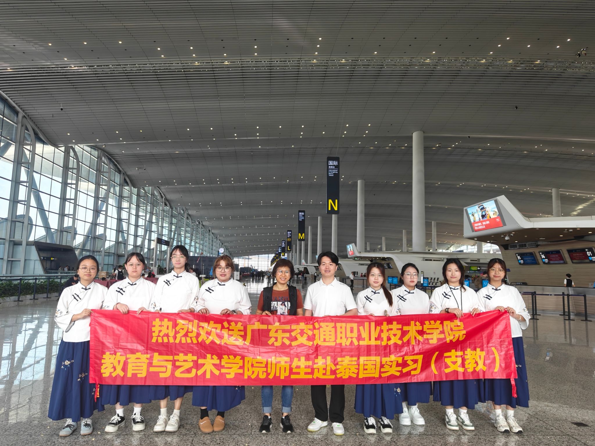 出发前,教育与艺术学院统筹完成对赴泰实习生的系统培训,培训内容涵盖跨文化交际、对外汉语教学法及中华才艺等核心内容。5月22日,师生一行从广州启程,抵达泰国后分赴三所实习学校。泰方学校精心安排食宿与生活用品采购,为师生团队快速适应异国环境提供保障。